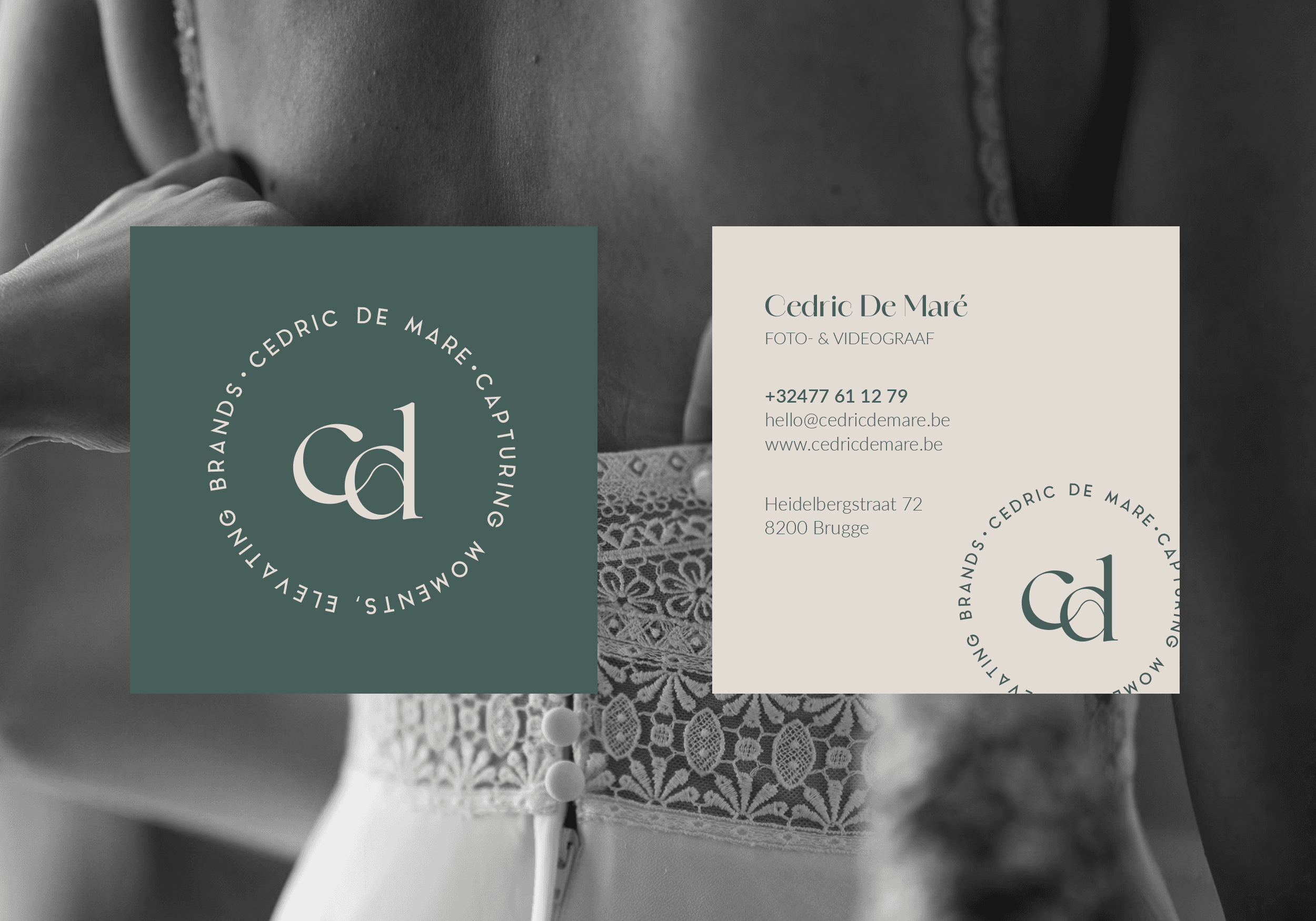For this project, I created the new branding for Cedric De Maré. He is a Belgian photo- and videographer with a romantic and elegant style. He dreams of attracting more high-end clients and wanted something that felt luxurious, but still set him apart. He is in love with deep green tones and graceful initials. So I created a timeless look for his identity. It was a lovely challenge where I learned a lot and truly enjoyed crafting every little detail.